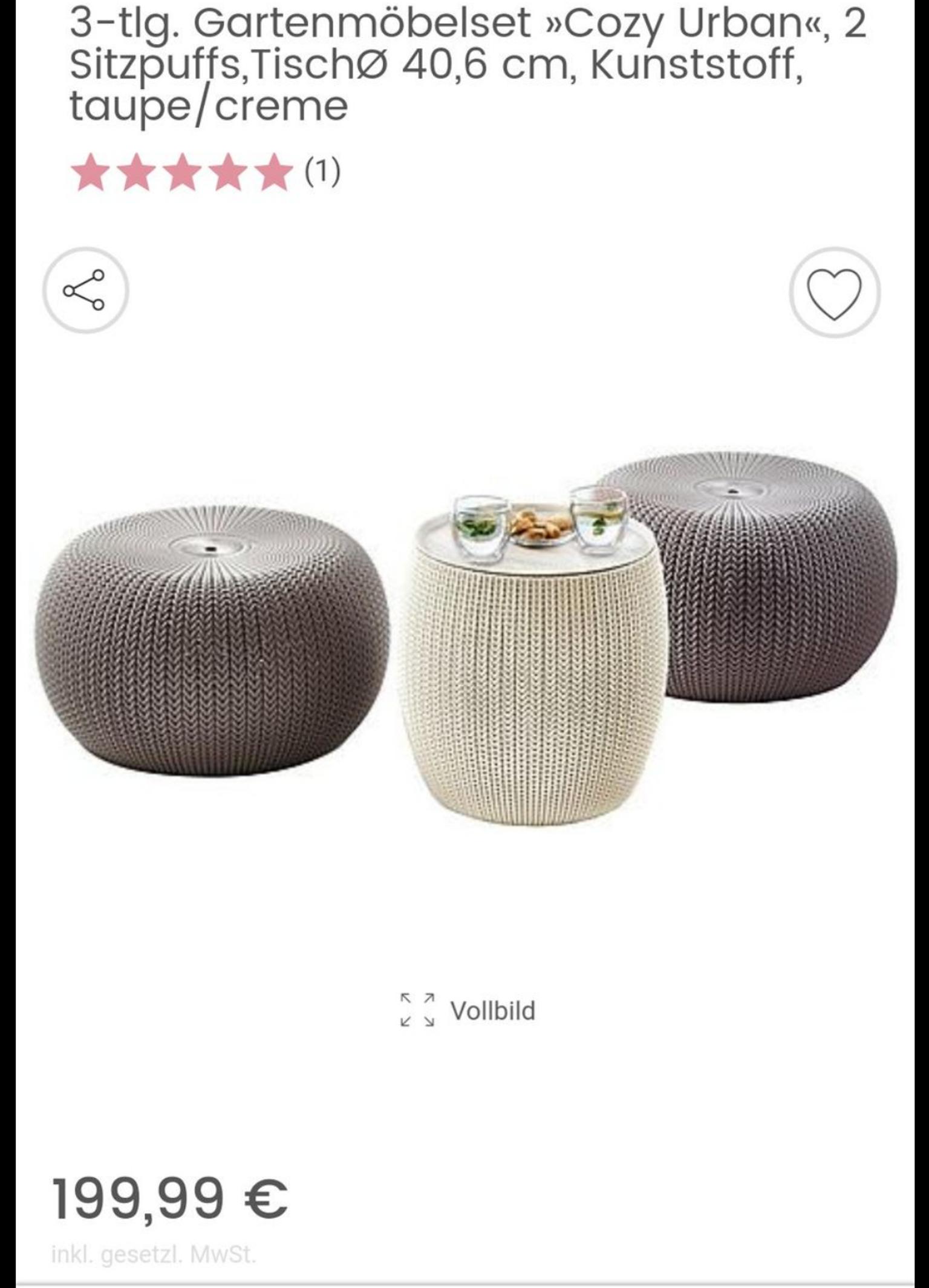 3 Tlg Gartenmöbelset Cozy Urban 2 Sitzpuffs Tischø 40 6 Cm Kunststoff Taupe Creme Online Kaufen Otto